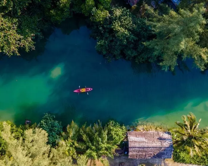 If you wish to combine relaxation with adventure, you can visit the roaring Khlong Chao waterfall, where you can take a dip in a cool, natural pool at the waterfall’s base. Another unforgettable experience is a kayaking trip through the mangrove forest by Klong Yai Kee or Klong Chao river. Here, you can silently glide through lush landscapes, experiencing the island’s unique ecosystem and wildlife up close.