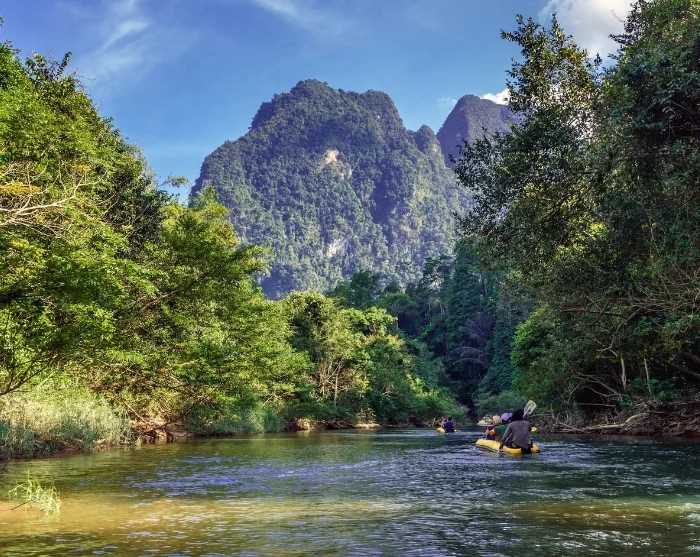 The drive from Surat Thani airport to your hotel takes around 1 hour and 40 minutes. Upon arrival at your accommodation, you’ll enjoy a peaceful canoe trip along the Sok River. It’s a truly delightful experience, drifting quietly on the water while you soak up the sights and sounds of the surrounding rainforest. Take in the view of dramatic limestone cliffs and lush, vibrant nature. Listen to the birds singing high in the treetops, and keep an eye out by the riverbanks—if you’re lucky, you might spot a monitor lizard. Best of all, you can simply sit back and relax while your local guide does the paddling for you.