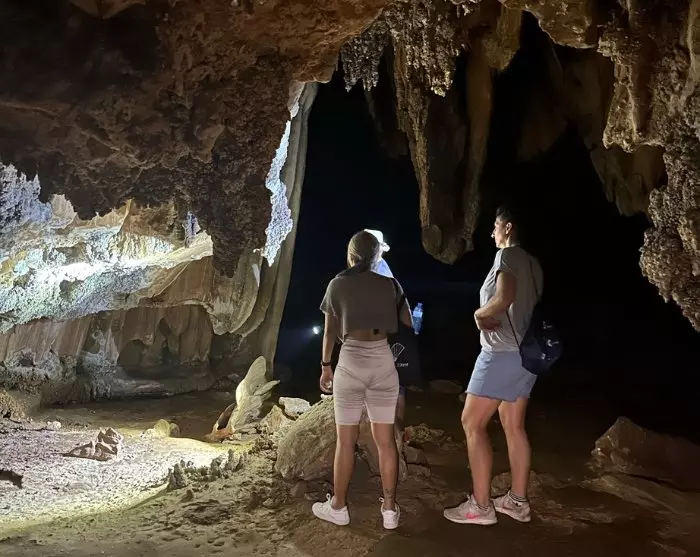 Alternatively, join an exciting hike through the jungle to one of the area’s stunning stalactite caves, Coral Cave. Make sure to bring water and good, closed shoes, and be aware that it may be slippery during the rainy season. Accompanied by your guide, you’ll be taken to the start of the hike in a long-tail boat. During the hike, you’ll experience the jungle’s impressive plant life, with your guide explaining the various species along the way. You may also spot some of the jungle’s birds and insects. After approximately 45 minutes, you will arrive at a lagoon where a bamboo raft waits to take you to Coral Cave, which takes about 15 minutes. Inside the cave, you’ll see beautiful stalagmites and stalactites resembling elephants, witches, and snakes. The return journey follows the same path as the arrival.
