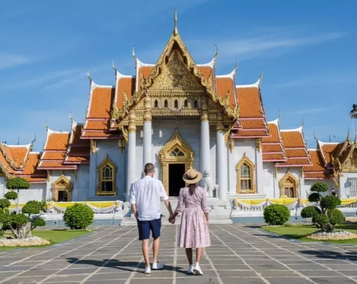 You’ll arrive in Thailand’s vibrant capital, Bangkok. After passing through immigration and collecting your luggage, you’ll meet your guide in the arrivals hall at Door B, Gate 6. Your guide will be wearing the TourCompass uniform and carrying a TourCompass sign, making it easy for you to spot them. From here, you’ll be transferred to your hotel in the heart of Bangkok – and even on the way, you’ll get your first glimpse of the city’s grandeur and its bustling, energetic atmosphere.