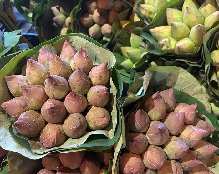 The tour continues to Thailand’s largest flower market, Pak Klong Talat, which is only open in the evening. Stroll past the vibrant flower stalls and try your hand at folding your own lotus flower, an important symbol, especially for Buddhists.