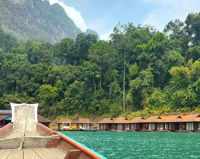Next, you’ll be driven to the Ratchabrapa pier near the impressive dam. Here, you will board a long-tail boat and sail onto Cheow Lan Lake, where the majestic landscape with iconic limestone cliffs awaits.