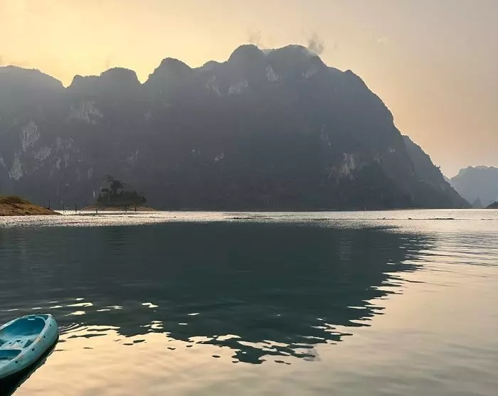 Part of Khao Sok National Park is formed by the 165 km2 emerald lake, Cheow Lan. The lake was created when the Rajjaprabha dam was built in 1987, submerging the area. 385 local families were relocated and compensated, and animals were transported via the rivers and flown out by helicopter. As the area became more flooded by rain and river water, part of the rainforest turned into a lake. The towering limestone cliffs, which once rose high between the tree canopies, were transformed into small rainforest islands that today pierce the emerald-green water. It’s no wonder Cheow Lan is sometimes described as Thailand’s answer to Guilin, one of China’s most beautiful places.