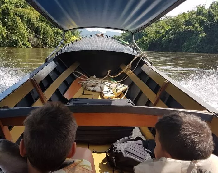 After a delicious breakfast, you’ll check out and be sailed by long-tail boat to River Kwai Jungle Rafts, where you can drop off your luggage until check-in later in the day.