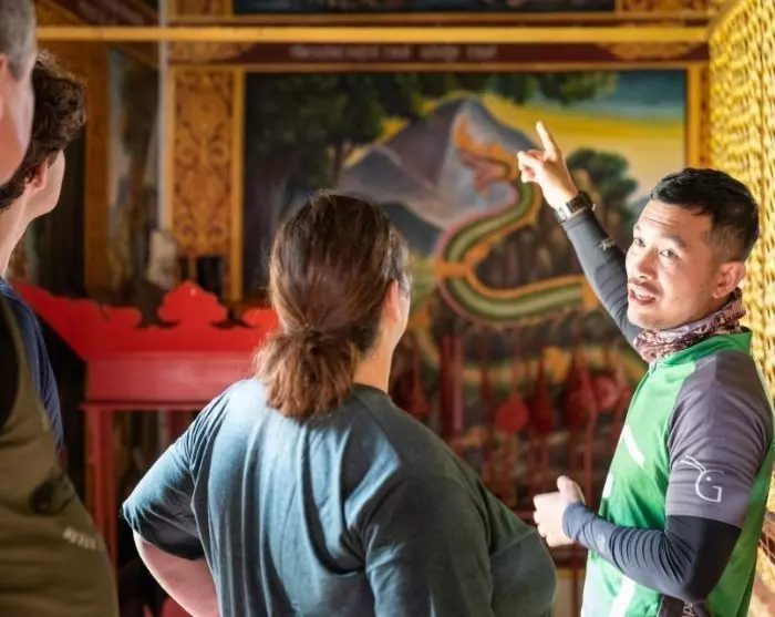 After a lovely 3–4 hour bike ride, a well-deserved and delicious lunch awaits you, consisting of the dish “khao soi” – a spicy noodle soup, which is a speciality in northern Thailand. Lunch is served at the Naree De Klang Vieng restaurant, which is run by inmates from Klang Vieng Women’s Prison. Thanks to the prison’s excellent rehabilitation project, the women, who are typically convicted of selling or producing drugs, have the opportunity to train in various service professions that prepare them for a new life outside the prison walls. The food and service are top notch!