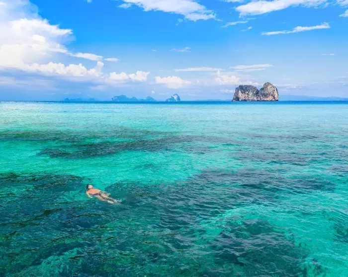 You’ll once more board the longtail boat, which takes you to Koh Gai, also known as Chicken Island due to the island’s rock formation resembling a hen. The island boasts beautiful beaches and is surrounded by crystal-clear waters teeming with coral reefs and colourful fish.
