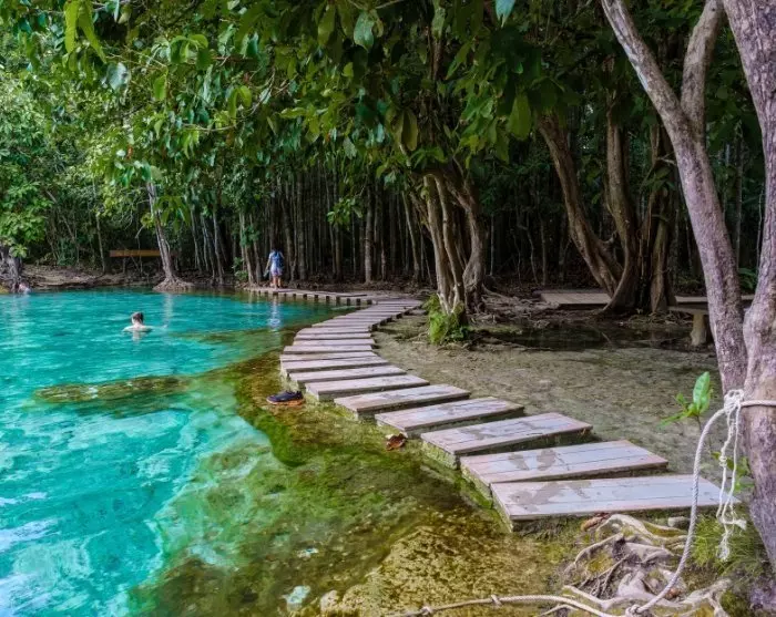 In Krabi province, you also have the chance to experience Thai culture influenced by two religions. Here, Buddhists and Muslims live harmoniously side by side. The multicultural society is vividly reflected in the cultural experiences available. You’ll find both mosques and temples around, and the Tiger Cave Temple, just outside Krabi, is particularly worth visiting. Here, you can get close to monks’ daily lives and experience the spiritual calm of the place. If you’re up for a challenge, you can take on the over 1,200 steps to the top of the cliff – a symbolic journey representing the overcoming of life’s challenges and the pursuit of inner peace.