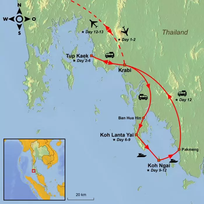 On this tour, you will experience Krabi Province from its best side. The days are spent both on the mainland and on the peaceful and relaxed islands of Koh Lanta and Koh Ngai.