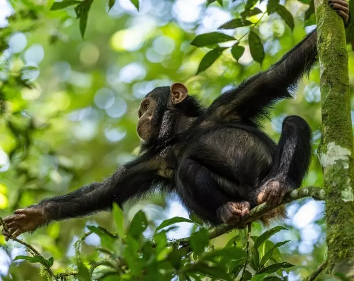Humankind’s closest living relative is the chimpanzee – only a small percentage of our genes differ from theirs. They are among the most intelligent primates, using “tools” in their daily lives and crafting nests from branches and leaves that they sleep in each night.