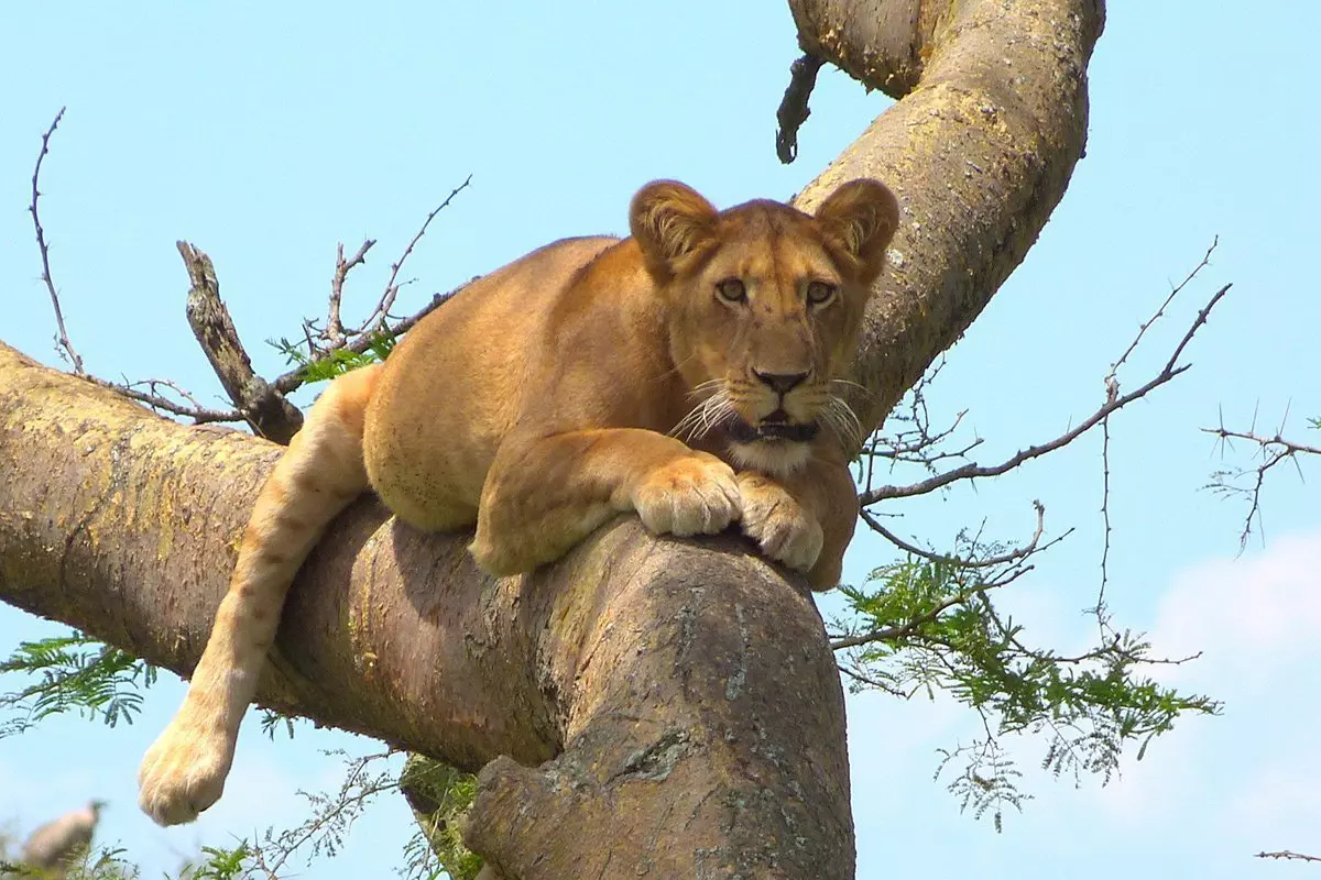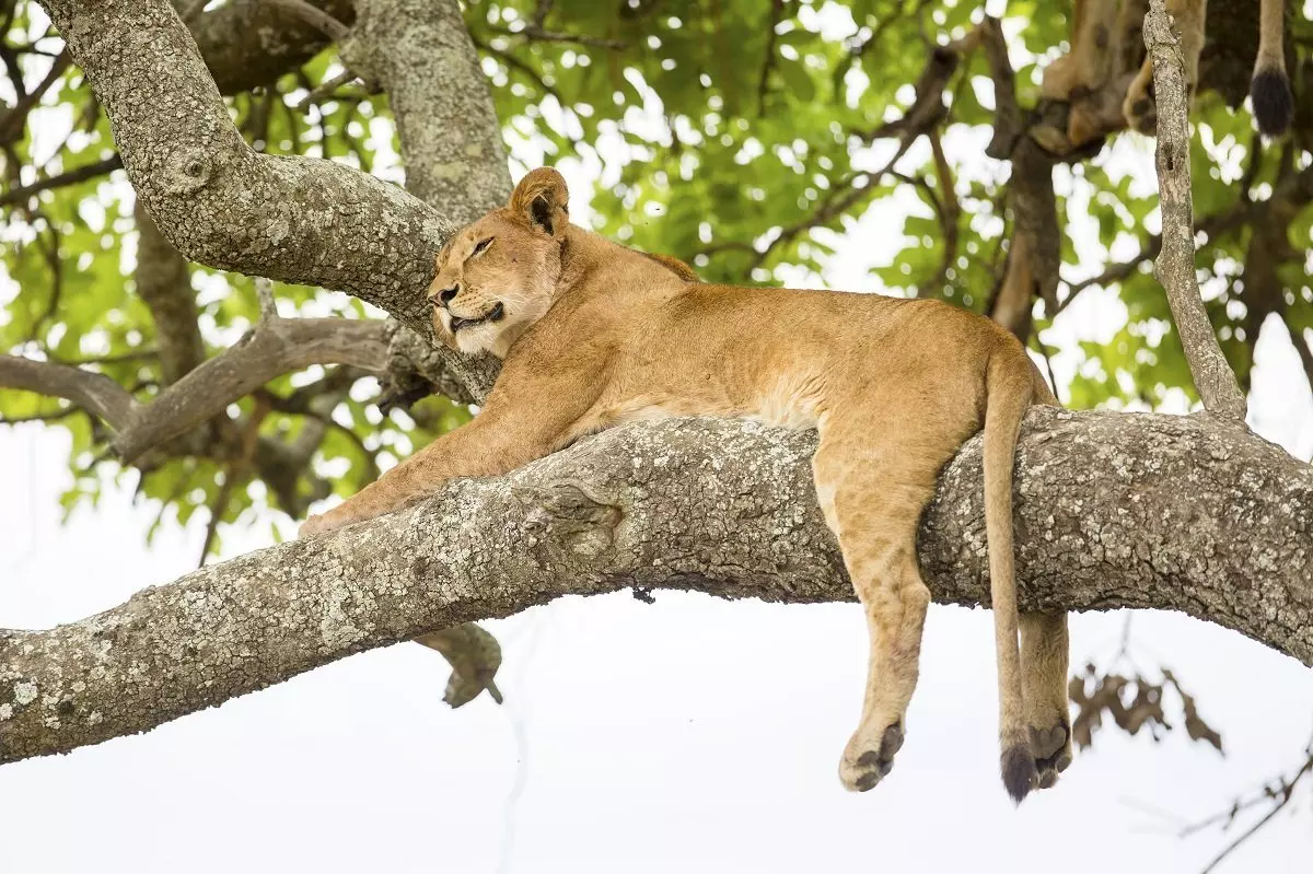 In the afternoon, the tour heads south towards Ishasha, which is famous for its tree-climbing lions. Either this afternoon or alternatively tomorrow morning, there is a morning game drive in search of the tree-climbing lions, among other animals. They tend to climb the trees to get away from flies and to seek shade from the baking sun. It is not common practice for lions to climb trees, but this happens in some national parks in Tanzania as well as in Uganda.