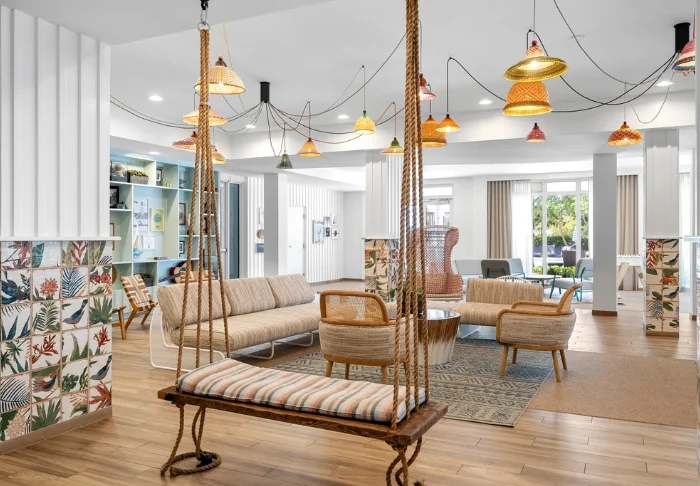 Truman Hotel is a small, intimate hotel with only 35 rooms, each uniquely decorated in different colours, lending a comfortable and homely feel to match their individual character. At the heart of the hotel, you’ll find a genuine oasis, featuring a small pool encircled by sun loungers and palm trees – the perfect place to press pause for a while and relax with a good book. Throughout the hotel, there are plenty of cosy corners to retreat to, where you can soak up the holiday vibe and enjoy the gentle sea breeze.