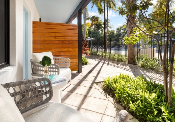 The hotel’s pool area is perfect for a dip followed by a relaxing spell on the sun loungers if you are looking for a change to Florida’s many beaches. You will also find a modern gym and a tennis court if you want to keep in shape.