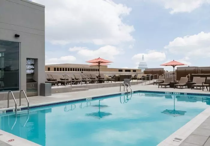 The hotel is distinguished by its simple and modern style, and in addition to its good location, offers a beautiful roof terrace with views of the United States Capitol. The seasonal roof terrace offers not only spectacular views, but also has a lovely pool which allows you a respite from the big city and, not least, the chance to cool down, especially in the hot summer months.