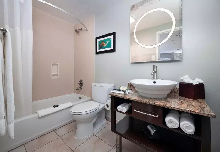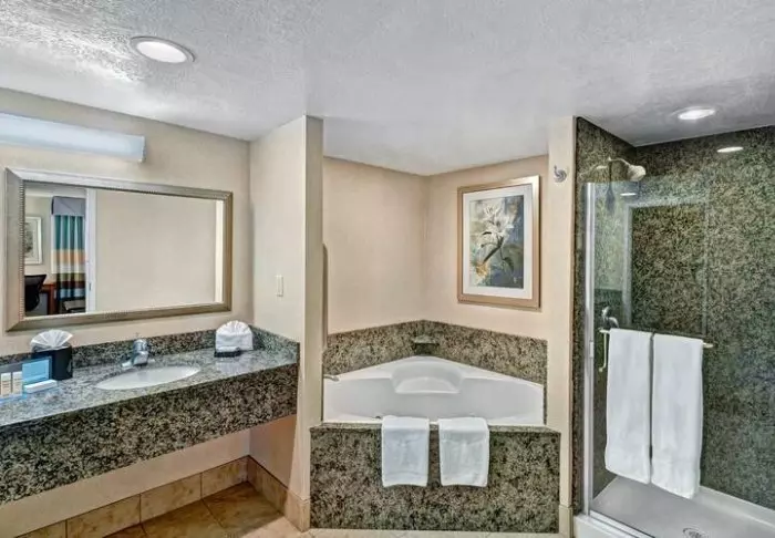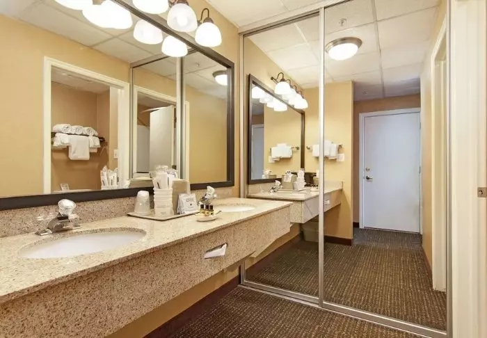 There are 2 restaurants in the hotel’s premises that offer breakfast and dinner options. Here, you can get classic American dishes, as well as pizza for dinner.
