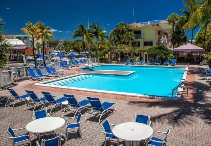 At the resort, guests can enjoy quiet moments by the outdoor pool with views of the marina or use the resort’s gym facilities. For those who want to explore the crystal-clear waters around Key Largo, the resort can help arrange small trips to the coral reef John Pennekamp Coral Reef State Park (must be booked locally).