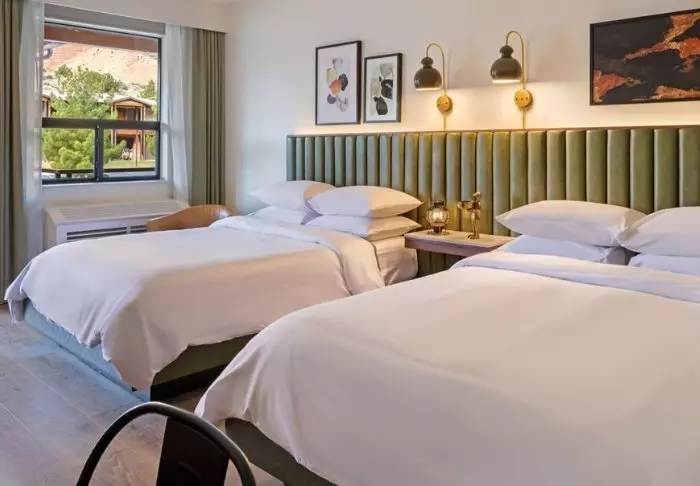 Imagine starting the day in the middle of Utah’s orange-red nature on the edge of Zion National Park. That is exactly what awaits you when staying at Red Cliffs Lodge Zion, located in the small town of Springdale in the front row to one of America’s most magnificent national parks. And with a location right in the middle of the incredible landscape, you really get to feel nature up close and ensure optimal use of your time. Despite the town’s modest size, there are both shopping facilities and several eateries and cafés along the main road. In the local area, you can also rent mountain bikes and try ziplining.