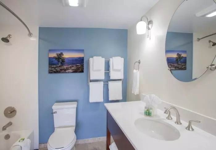 Tenaya Lodge has 302 rooms, decorated in warm shades and with the use of natural materials, creating a cosy, homely atmosphere. Each room offers modern conveniences such as a desk, Wi-Fi, a mini fridge, a coffee maker, a TV, a safe, an iron and ironing board, and air conditioning.