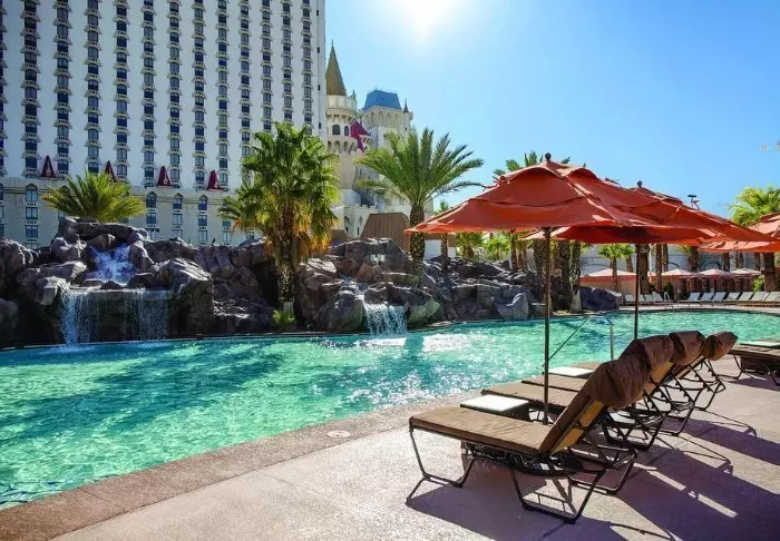 The Excalibur Hotel & Casino is located at the south end of Las Vegas Blvd. and is characterised by its medieval theme. The exterior of the hotel resembles a huge castle and is named after King Arthur’s mythical sword, Excalibur.