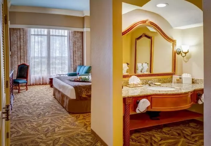 The resort has something for everyone, both couples and families. Loews Sapphire Falls Resort is located next to a wide lake, and there are beautiful views of the water from the hotel’s small oases and the pool area. You can lounge by the large pool, which is designed as a tropical oasis with palm trees and a small beach. If you are travelling with children, they will undoubtedly love the water slide and a trip to the playroom. Or you can cozy up in front of the fire while making S’more – the well-known American dessert consisting of roasted marshmallows, biscuits and chocolate.