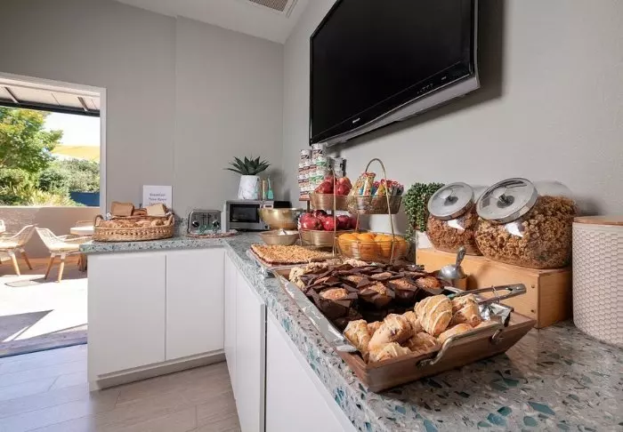 In the communal area, you can start the day with a cup of coffee and a light continental breakfast.