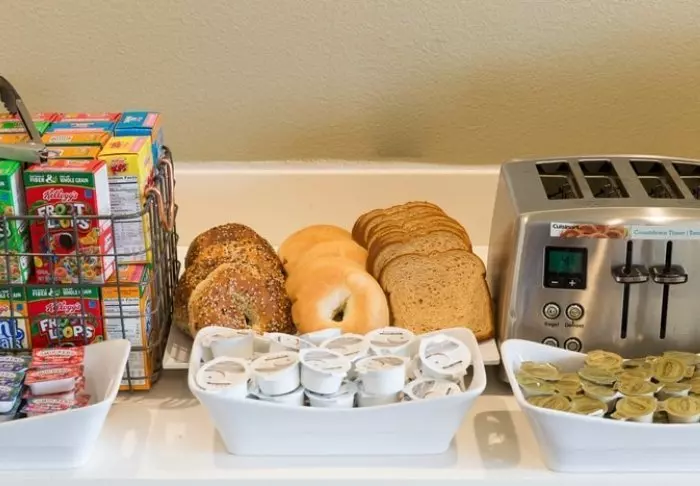 Start the day with a continental breakfast (included). If you require a more substantial breakfast, consider visiting the nearby breakfast chain, Ihop, known for their tall pancake towers.