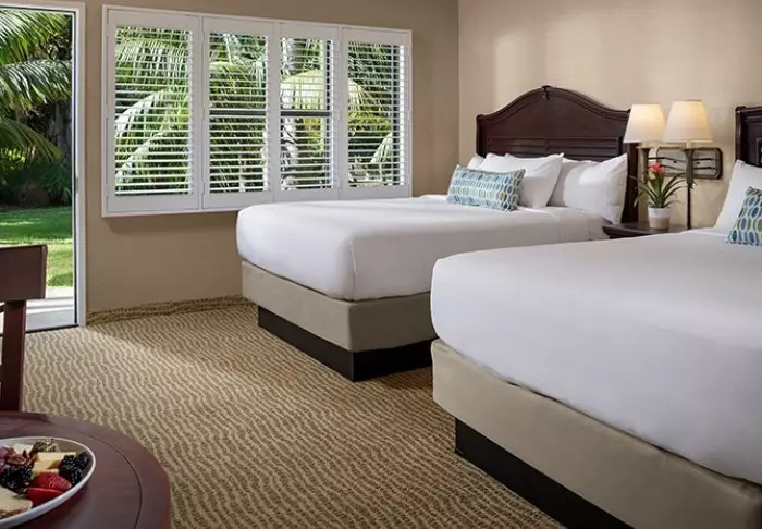 Catamaran Resort & Spa is surrounded by palm trees and large plants, with a tropical atmosphere all around it. This feeling is in many of the 310 modern rooms, which are furnished with exotic prints and colours, drawing inspiration from the Polynesian style. Each room is fitted with modern facilities, such as TV, Wi-Fi, a safe, mini-refrigerator, as well as an iron and ironing board. The bathrooms feature a hair dryer, bath robes, and a range of complimentary toiletries. Each room has its own balcony or porch, perfect for concluding your day in the evening breeze from the Pacific Ocean.