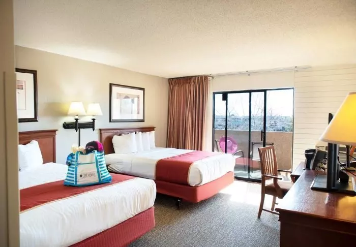Red Feather Lodge consists of both a hotel section and an older motel section. You will only be offered a room in the section of the hotel that was renovated in 2019. This is evident in the attractive rooms, which offer adjustable air conditioning/heating, a coffee machine, a mini fridge, a microwave and free Wi-Fi. All rooms have their own bathroom with a hair dryer.
