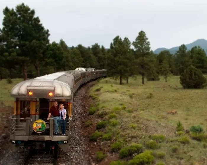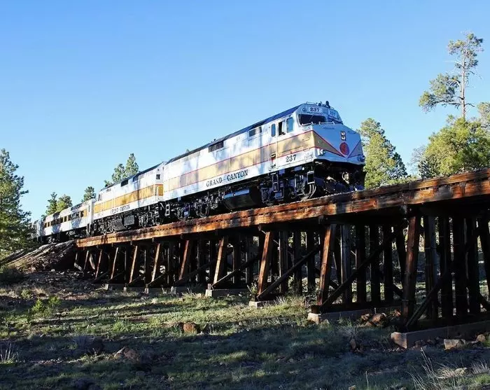 The excursion includes: Return train ride between Williams and Grand Canyon plus national park fee/admission