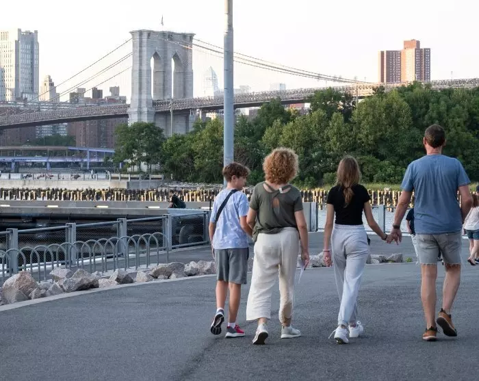 From the starting point, you and your group will be accompanied by your guide across Brooklyn Bridge, while your guide tells you about the fascinating history of the bridge and with the fantastic views of Manhattan as a backdrop. On the other side of the bridge, you will reach the DUMBO area, where you can experience the waterfront and see the Brooklyn Bridge from a new angle. The DUMBO area is known for its promenade along East River as well as its charming atmosphere with lots of designers, artists, specialty stores and great eateries. Finally, the walk reaches Brooklyn Bridge Park, after which you can continue exploring the area on your own.