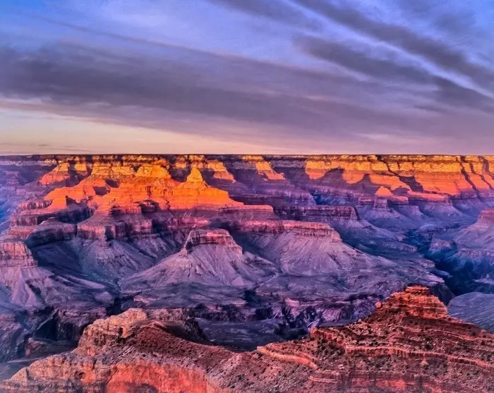 One of the most iconic sights is the Grand Canyon, located in northern Arizona. The Grand Canyon was created millions of years ago by the erosion of the Colorado River, tectonic movements and the effects of the weather. The Grand Canyon is one of the seven natural wonders of the world, and regardless of how exactly it was formed, it is impressive to experience the canyon, which stretches over a huge area which is more than 446 km long, up to 29 km wide and over 1,800 metres deep.