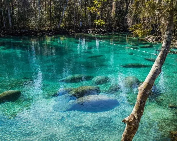 If you’re ready for some adventure, you can drive via the Crystal River, which is known for the numerous manatees, or sea cows, which especially in the cooler months find their way to the Three Sisters Springs wildlife refuge. The slow but massive creatures can be observed in several places in Florida, but here in Three Sisters Springs you often find the greatest concentration from the 3 km long trail system.