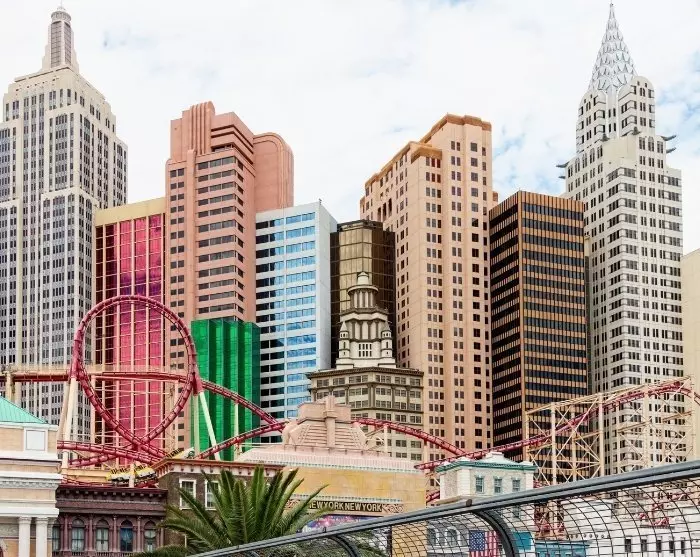 After another few hours of driving from Barstow, you can suddenly sense Las Vegas in the distance. As you approach the city, you will be able to see quirky buildings towering up on the horizon. These are the famous theme hotels that are located side by side along the almost 7-km long Las Vegas Blvd. – also called The Strip.