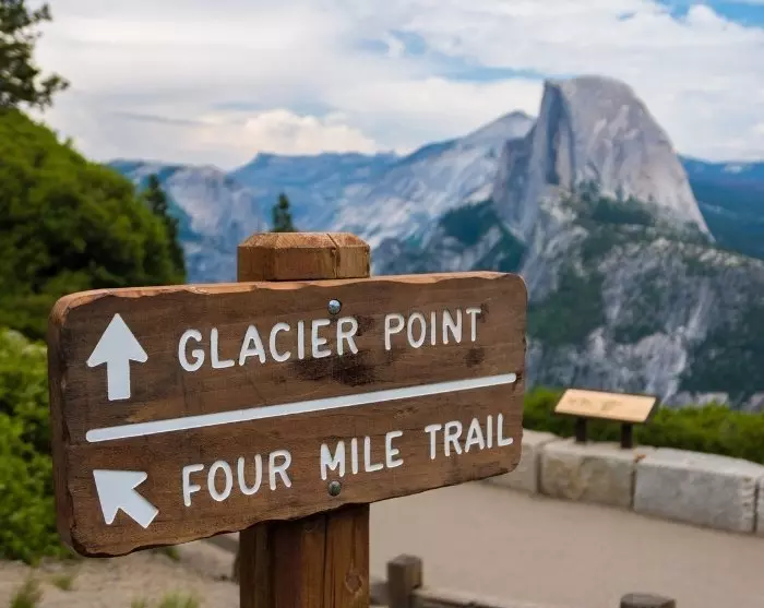 During the summer months, when the snow has melted, Glacier Point is one of the vantage points that you should not miss out on. You can both drive up there by car or book a bus ride to Glacier Point (booked for a fee directly in the park on a first-come, first-served basis). If you are up for a hike from the vantage point, you can also book a bus ticket up to the vantage point and hike down via the Four Mile Trail. From Glacier Point, you can also experience an exceptional sunset – namely the moment when the sun casts an orange glow on the big mountain, Half Dome.