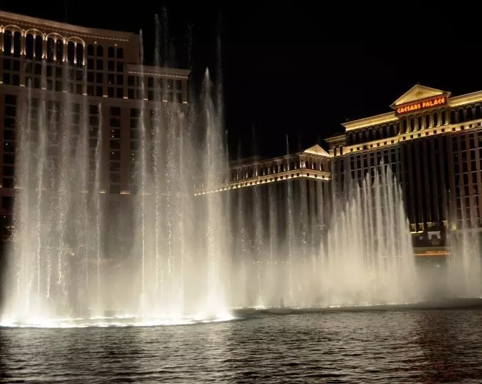 On arrival at your theme hotel, it is hard not to smile at the sight of the many flashing machines, where dozens of hopeful players sit pulling the ‘arm’. Check in at the hotel, take a dip in the pool and enjoy an evening at one of the city’s many restaurants. Already this evening, you can stop at the famous fountain in front of the Bellagio hotel, which, since it opened in 1998, has provided impressive water shows to the sounds of classical music for passersby.