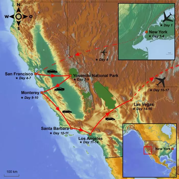Today, it’s time to leave the big city behind. Your road trip truly begins, and today’s destination is one of the tour’s major highlights: Yosemite National Park, which spans over 3,000 km².