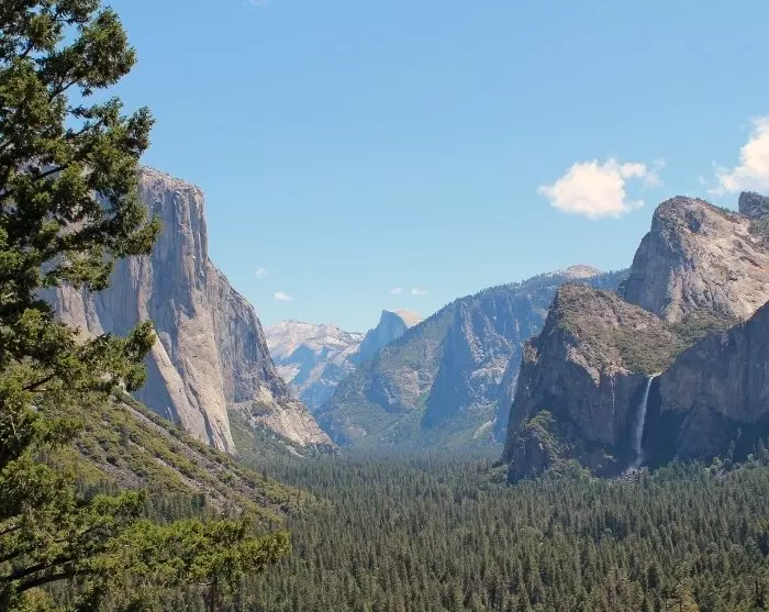 Another of the park’s unforgettable viewpoints is Tunnel View, where you get an amazing sight of Yosemite Valley, Bridalveil Fall, and the iconic mountains El Capitan and Half Dome.