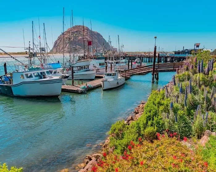 Further south, you pass the charming coastal town of Morro Bay, where the pace is relaxed and sea lions frolic among kayaks and fishing boats. The town’s landmark, the massive rock Morro Rock, is an unavoidable sight as you arrive from the main road. You can drive right up to Morro Rock, stretch your legs and see if you can spot the many sea otters thriving here in the Morro bay.