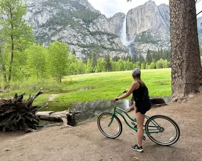 It is also possible to rent a bicycle in Yosemite Valley, so you can cycle around to all the nice places in the valley itself. A good place to enjoy a snack is by the small stretch of sand at the Swinging Picnic Area, overlooking Yosemite Falls.