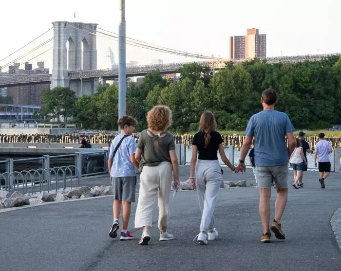 It is highly recommended to walk or cycle the beautiful trip to the borough of Brooklyn via the famous bridge of love, Brooklyn Bridge, and possibly return via Manhattan Bridge. On the Brooklyn side, you can enjoy a refreshment with views of the city from the DUMBO area, which is located between the two bridges.