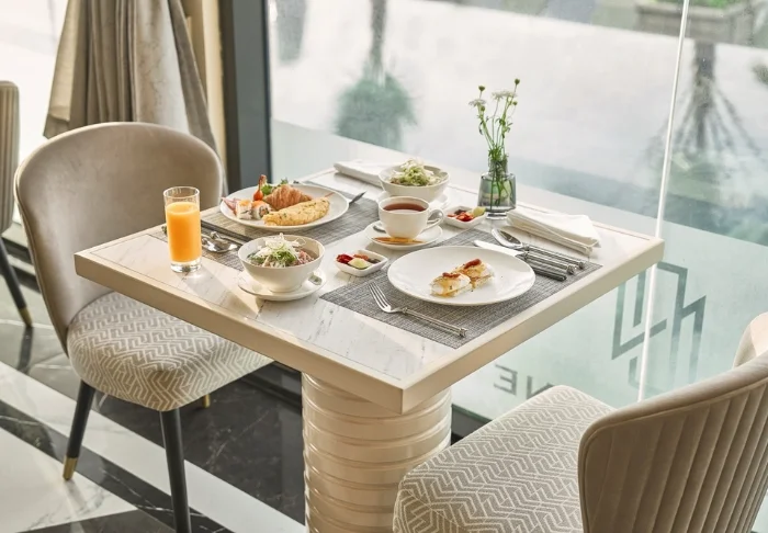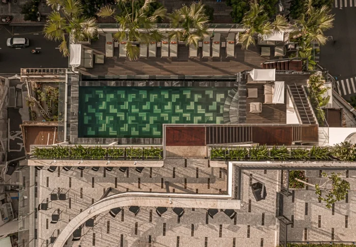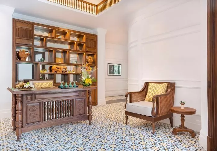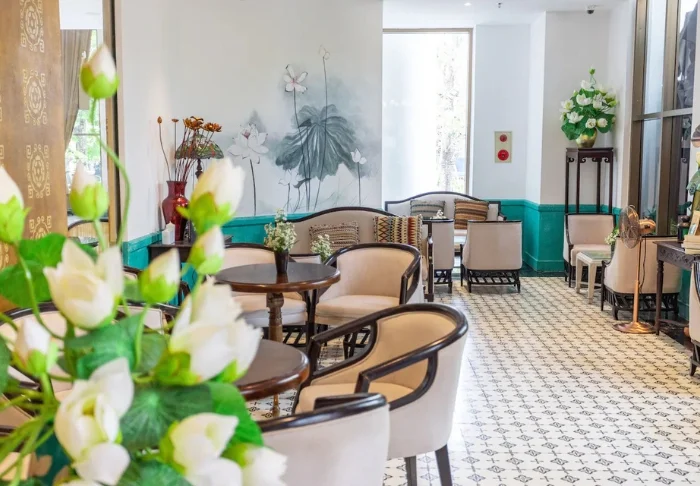 The hotel also boasts several bars, each with their own unique charm: Le 10° 19′ 44″, a tropical garden bar with a laid-back vibe serving the signature cocktail “Planteur de la Patronne”, and La Manufacture d’Opium, an Indochine-inspired lounge with a nostalgic atmosphere where you can sink into leather armchairs and enjoy a glass of Ricard, Khmer rum, or an exotic cocktail.