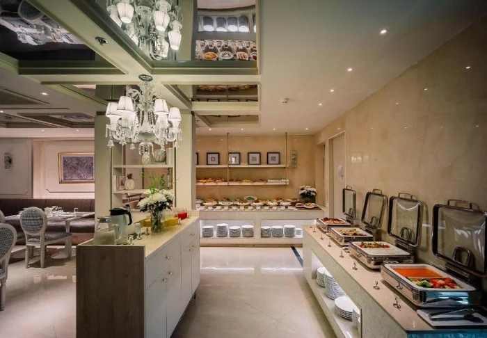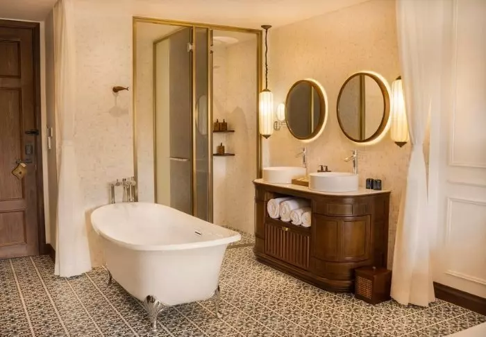 The hotel boasts a distinctive style, inspired by French art deco. You’ll stay in a Classic Wing room, stepping into a warm and inviting space with dark wooden accents, rich colours, and elegant fabrics. Each room features a desk, minibar, safety box, Smart TV, air conditioning, and complimentary Wi-Fi, along with a bathroom equipped with a hairdryer, toiletries, and either a shower or bathtub. The rooms face the city, and from the large windows, you can watch the ebb and flow of city life below.