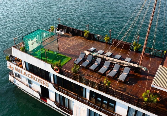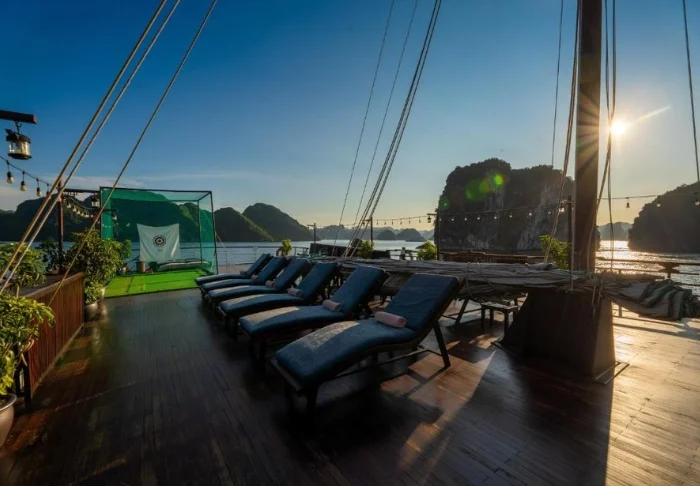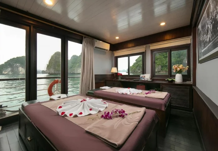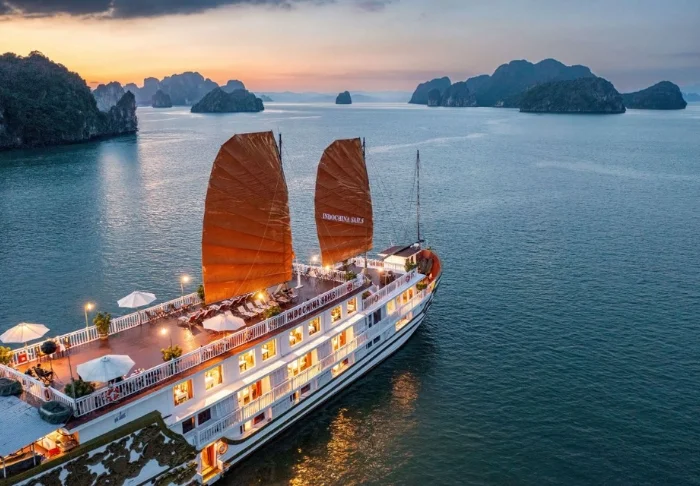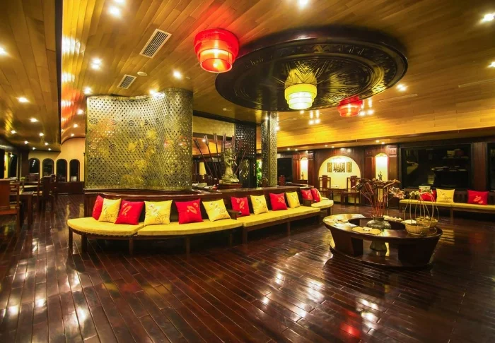 The restaurant offers a selection of both Vietnamese and international dishes, all prepared using high-quality ingredients. The ambiance is stylish, and dining on deck with the sunset as your backdrop is sure to be one of the highlights of your tour.