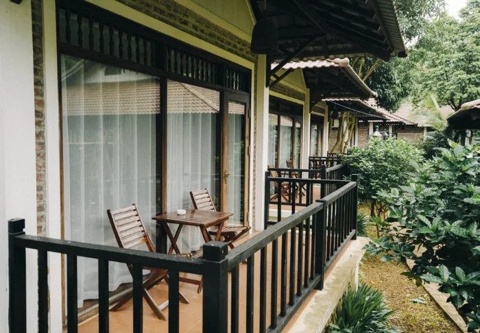 Your stay includes a superior room as standard, featuring a bright and soothing décor in earthy tones, creating a warm and relaxed atmosphere. Large windows let in plenty of natural light and offer lovely views of the surrounding area. The room is equipped with air conditioning, TV, Wi-Fi, a kettle, and a spacious bathroom with a shower. You’ll also enjoy a small balcony overlooking the garden or river—perfect for unwinding after a day of adventure.