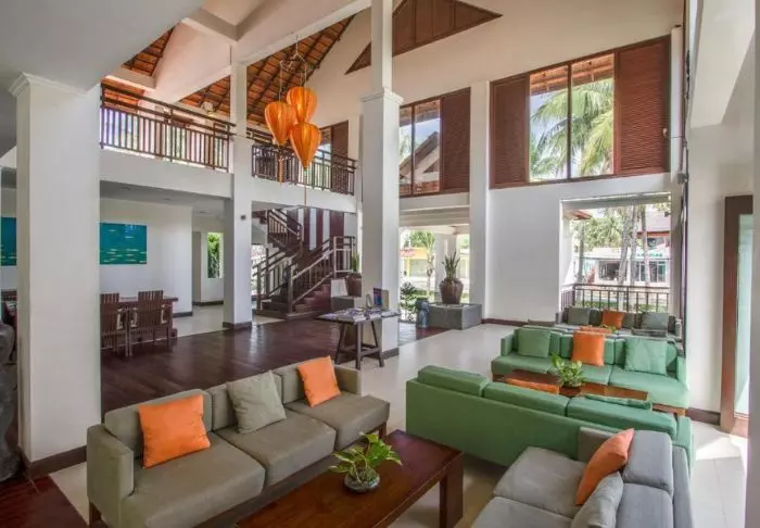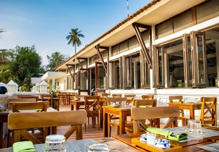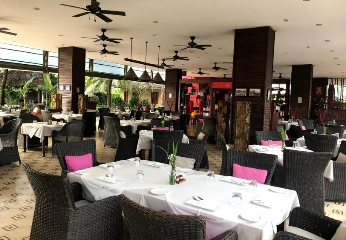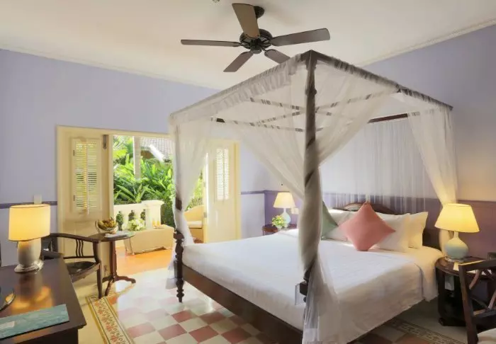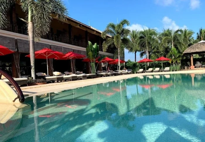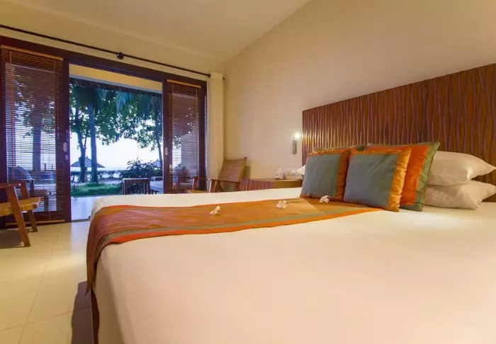The resort is constructed in an elegant French colonial style and is surrounded by tropical gardens. This elegant French style can also be found in its 70 tastefully-decorated rooms, all of which feature Wi-Fi, air conditioning, a safe, TV, refrigerator, mini-bar, tea and coffee facilities as well as a bathroom. From your balcony, you have a view of its beautiful gardens.