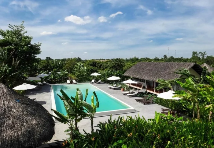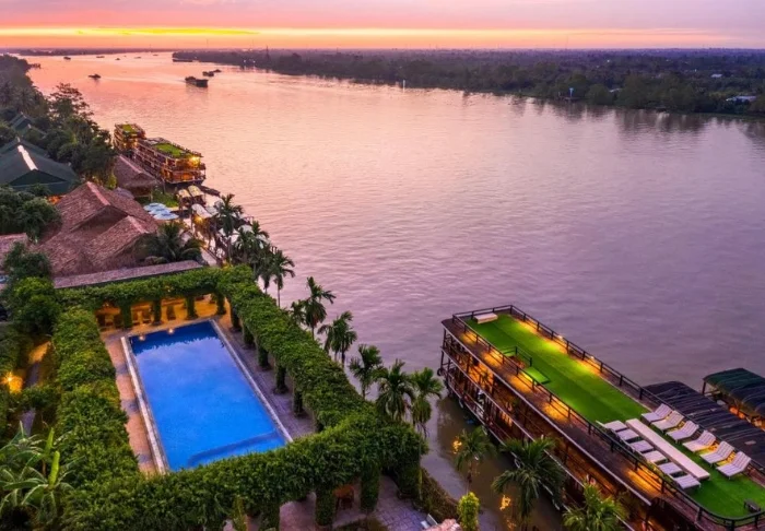 Mekong Riverside Boutique Resort & Spa is set right on the banks of the Mekong River in Cai Be. The resort features 25 bungalows with a total of 50 rooms, all nestled among lush orchards and verdant gardens. Here, you’ll find a peaceful retreat in the heart of the Mekong Delta’s lively daily life, surrounded by floating markets and small villages.