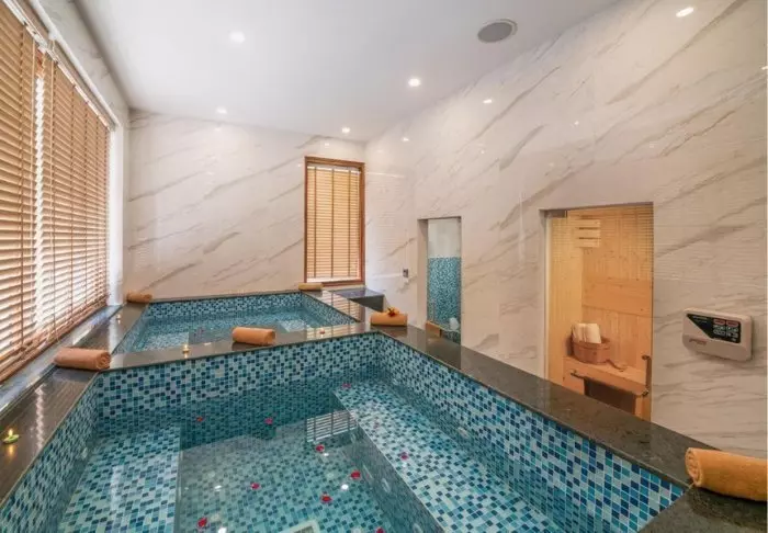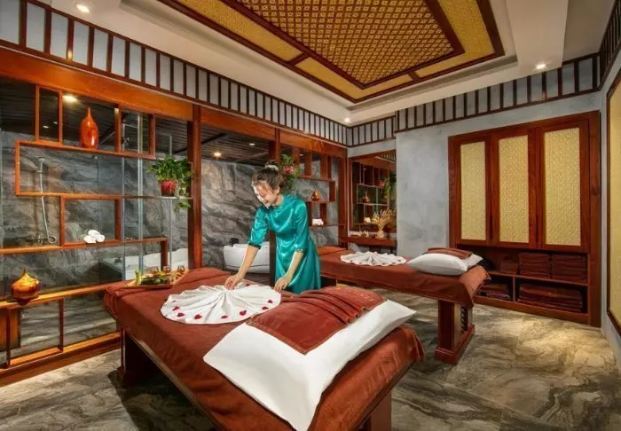 After a beautiful day in the sun, you can treat yourself to a relaxing treatment in the spa department, which is divided into small pavilions with partitions.