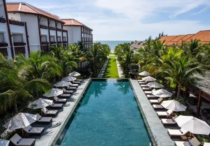 The charming Boutique Hoi An Resort exudes French-inspired colonial style. It is situated right on its own private beach at Cua Dai, a mere 5-minute drive from Hoi An city centre. The resort is one of the few that is not affected by erosion in the area and thus enjoys year-round popularity.