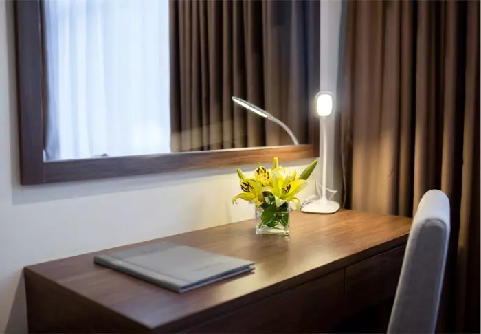 Your standard accommodation is a deluxe room featuring large windows and warm décor with dark wood, soothing tones, and soft textiles. The room offers a double bed or two singles, a private bathroom with a shower, complimentary toiletries, and a hairdryer. You’ll also find air conditioning, a safety box, Wi-Fi, a TV, a kettle, and bottled mineral water. The minibar is well stocked and included for the duration of your stay.