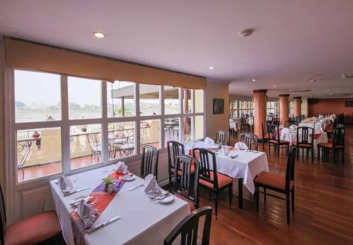 The hotel bar is the perfect place to relax with a refreshing drink while enjoying the view of the Hau River.