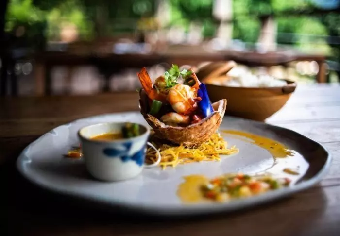 The restaurant, Le Comptoir de Marthe et Edouard, is named after the owner’s grandparents and offers a delightful fusion of Vietnamese and French cuisine. Chef Vo Quoc Thach leads the kitchen, creating a menu where local ingredients are paired with classic French techniques. You can savour these dishes on the terrace overlooking the river as the sun sets.